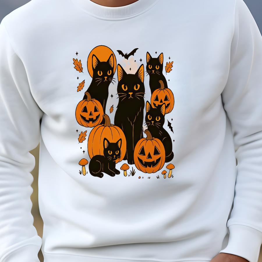 Black Cat Pumpkins Halloween Sweatshirt: Retro Graphic Hoodie Sweatshirt