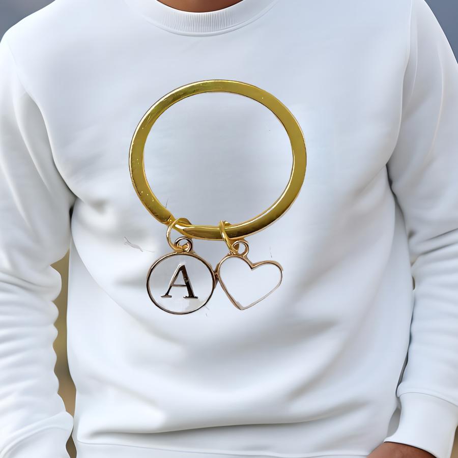 Heart Keychain Gold Initial Letter Charm Love Key Chain Aesthetic Accessories Initial Key Ring Personalized Keychain Bridesmaid Gift Sweatshirt