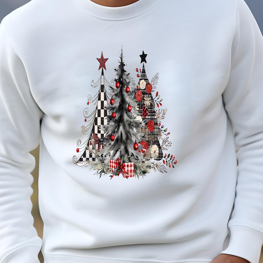 Plaid Christmas Trees Long Sve Shirt: Modern Holiday Tee Sweatshirt