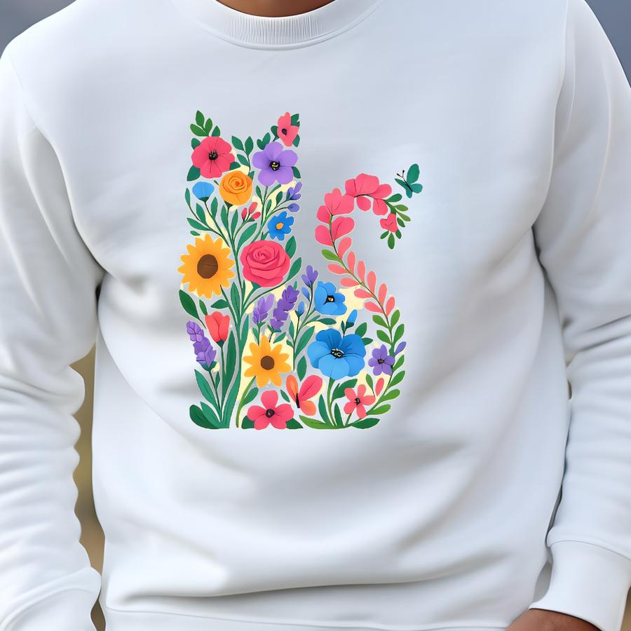 Cat Shirt, Cute Wildflower Cat, Cat Flower Silhouette Design, Premium Unisex Shirt, 3 Color Choices, 2x, 3x, 4x, Plus Sizes Available Sweatshirt