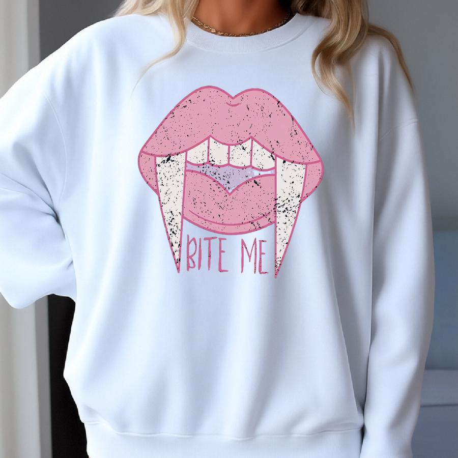 Bite Me Crewneck Sweatshirt, Bite Me Sweatshirt For Halloween, Sweater For Vampire, Halloween Sweatshirt, Aesthetic Halloween Shirt, Vampire Sweatshirt