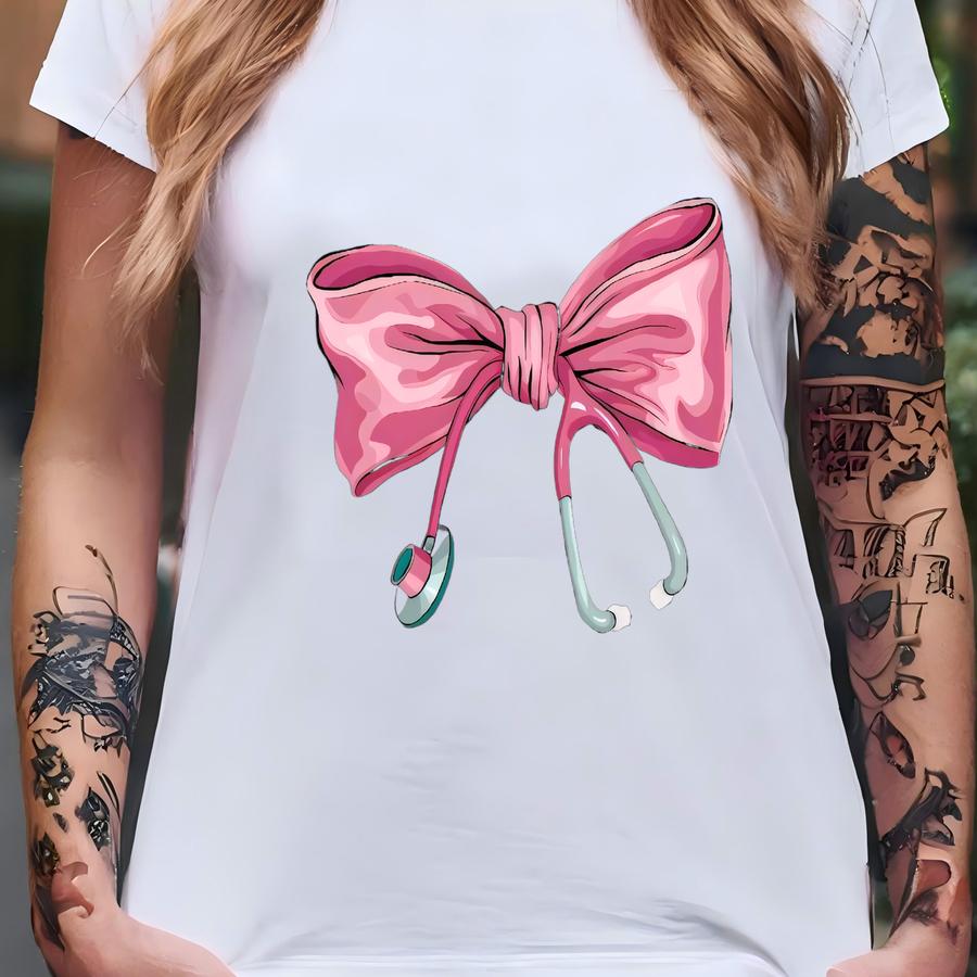 Coquette Nurse Sweatshirt: Pink Bow Stethoscope, Oversized Fit T-shirt