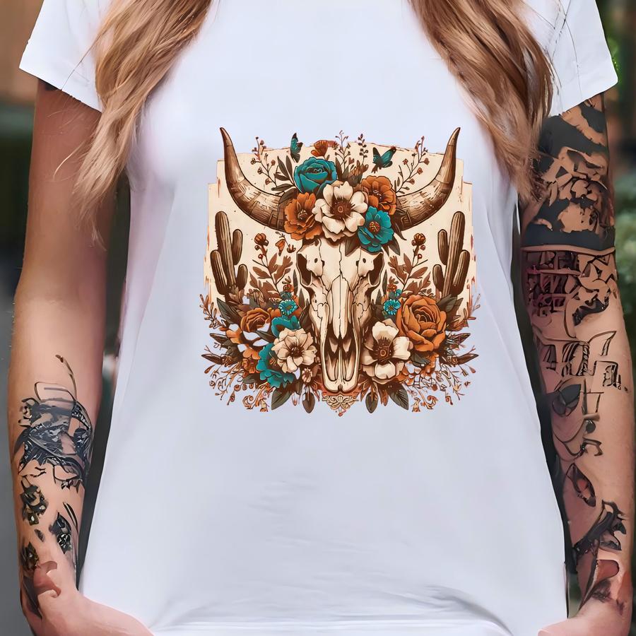 Floral Cow Skull Hoodie: Vintage Western Music Tee T-shirt