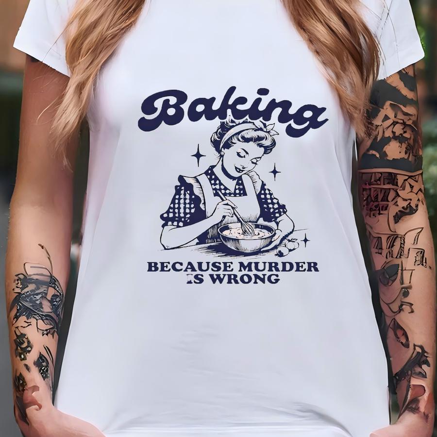 Baking Because Murder Is Wrong Sweatshirt, Funny Baking Tshirt, Baking Shirt, Gift For Bakers, Baker Hoodie, Baking Tee, Baking Gift For Mom T-shirt