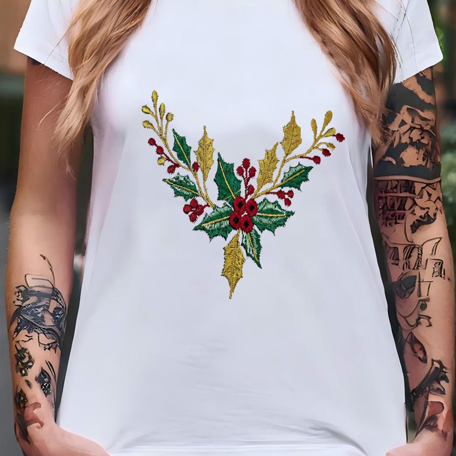 Dinner Napkin, Y, Christmas With Poinsettia, Can Add Initial T-shirt