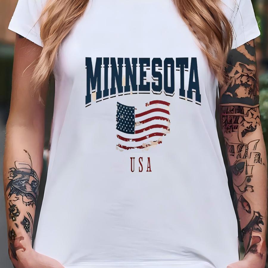 Minnesota Sweatshirt, Minnesota Crewneck, Minnesota Apparel, Minnesota Sweater, American Flag Usa Shirt, Minnesota Vintage Sweatshirt Usa T-shirt