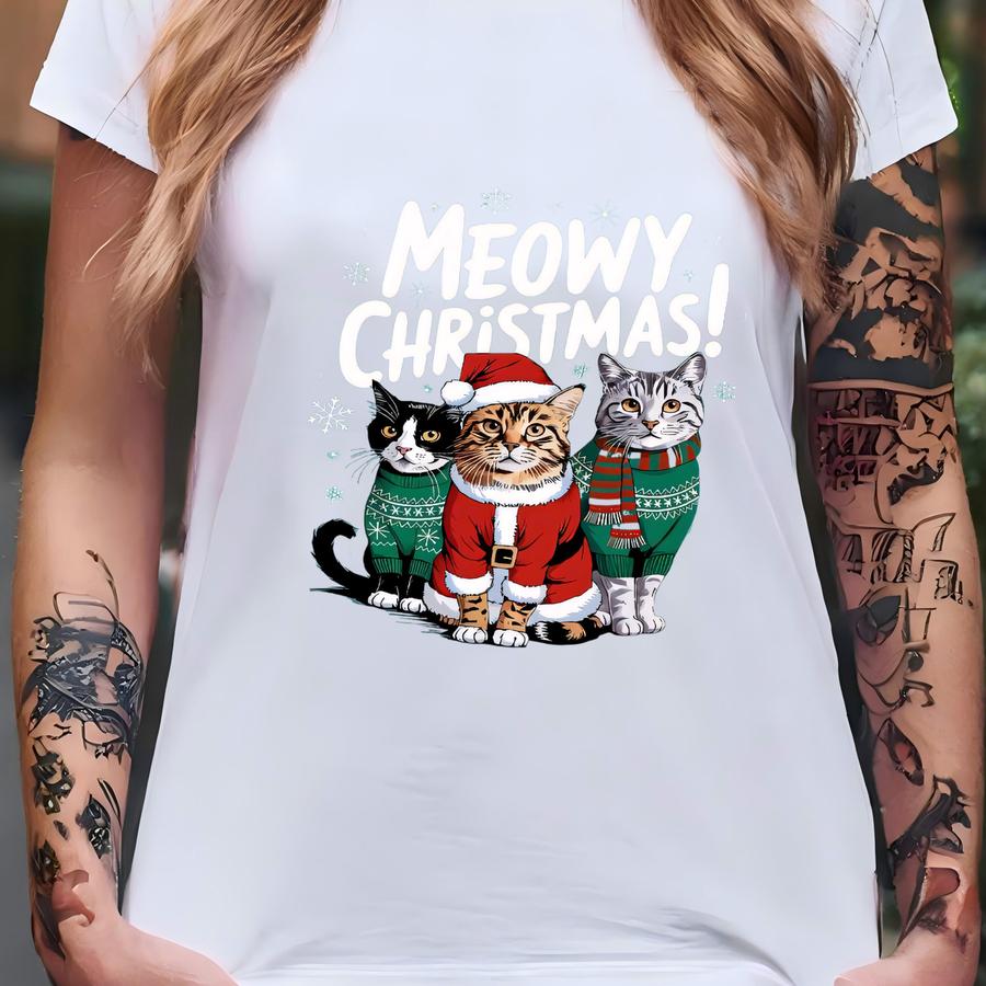 ® Meowy Christmas Shirt, Gift For Cat Mom T-shirt