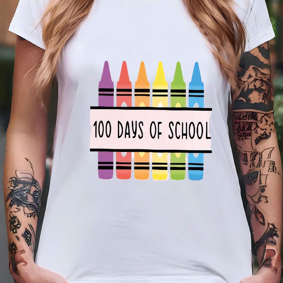 100 Days Of School Shirt, Cute School Shirt, Midterm Tee, Crayon Pen Shirt, 100 Days Smarter, Back To School Shirt, Teacher Appreciation T-shirt