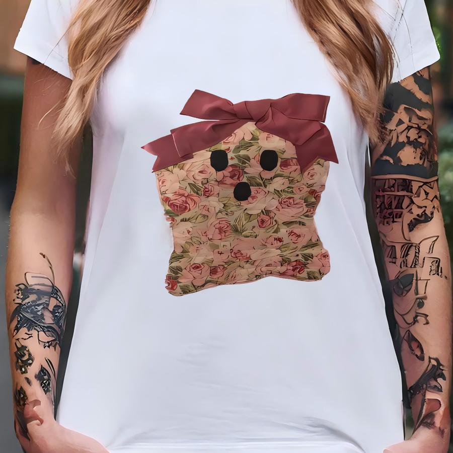 Coquette Ghost Quilted Love Shack Fancy Inspired Bow Halloween Sweatshirt Pink Hand Sewn T-shirt