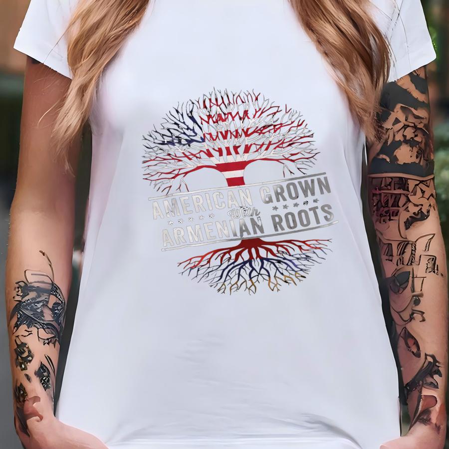 American Grown Armenian Roots Flag Hoodie T-shirt