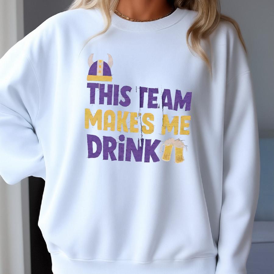This Team Makes Me Drink Minnesota Football Hooded Sweatshirt, Mn Vikes Fan Shirt, Funny Viking Shirt, Football Lover Gift, Viking Hoodie Sweatshirt
