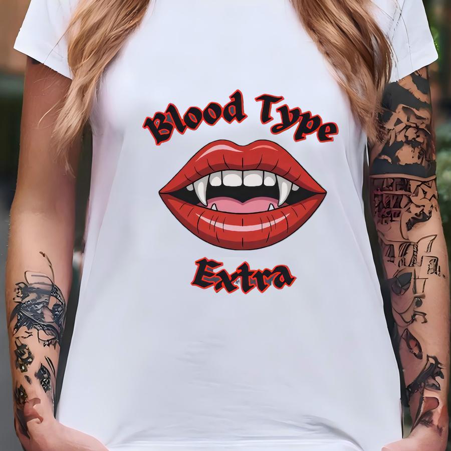 Blood Type Extra Unique Graphic Halloween Party Tee For Fall Night Out Party Or Birthday Gift T-shirt