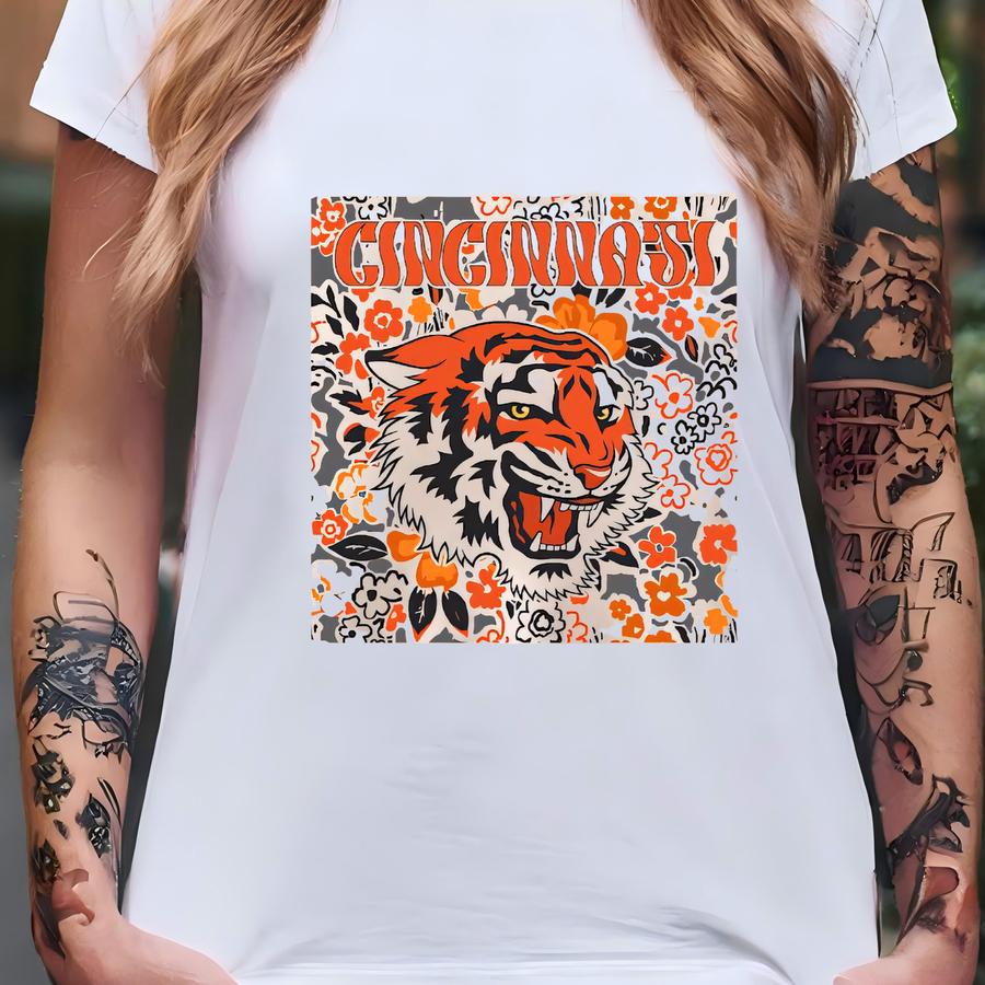Cincinnati Team Mascot Shirt, Floral Spirit Mascot Sweatshirt, Game Day Tee, Abstract Flower Football Sports Shirt, Cheerleader Gift Shirt T-shirt