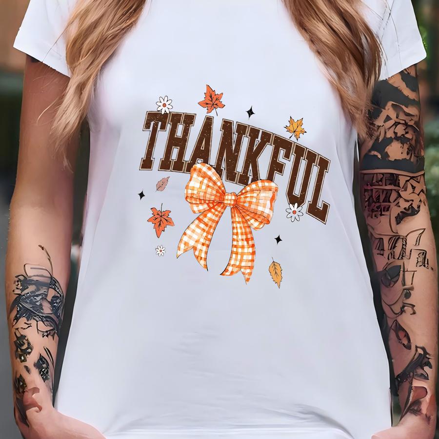 Thankful Fall Sweatshirt Or Hoodie | Plaid Bow Autumn Tee | Thanksgiving Gratitude Shirt | Cute Fall Outfit For Women | Cozy Autumn Top T-shirt