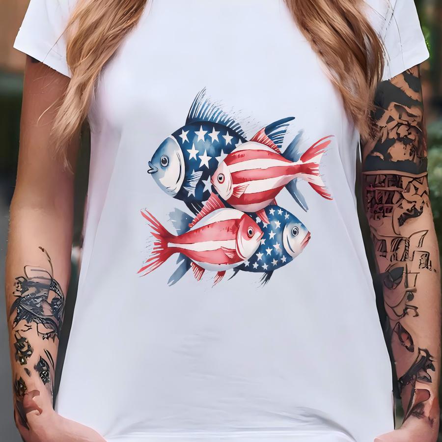 4th Of July Patriotic Fish Shirt – Usa Fishing Tee – Red White Blue Angler Shirt – Independence Day Outdoors Shirt – American Fisherman Gift T-shirt