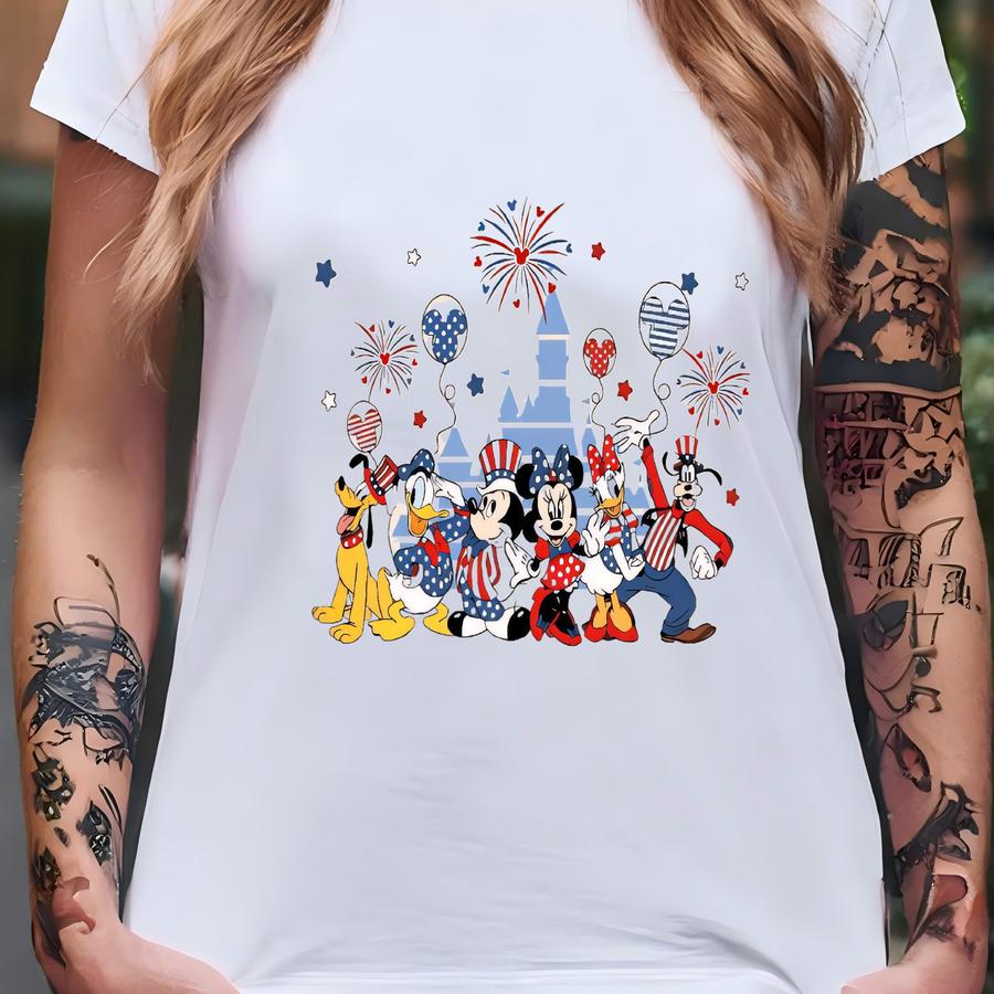 Fireworks Shirt, Pluto Daisy Donald, 4th Of July Family Tee, Patriotic Cartoon Shirt, Red White Blue Celebration T-shirt