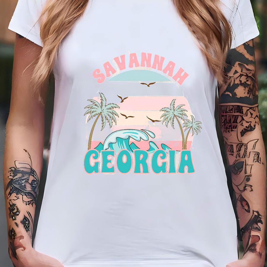 Savannah Georgia Beach Hoodie, Beach Tee, Retro Beach Design Short Sve Tshirt T-shirt