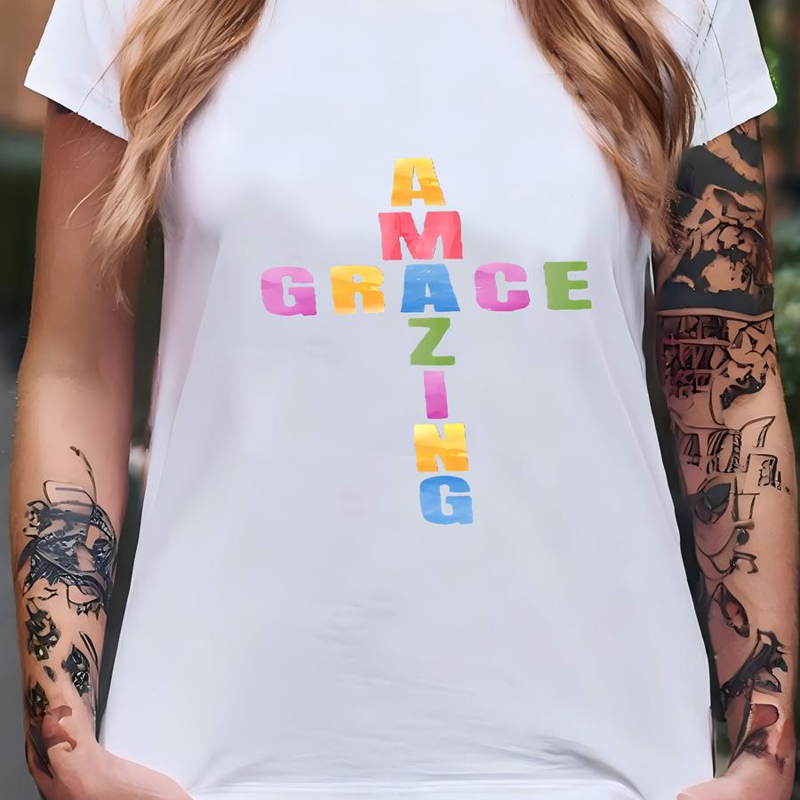 Amazing Grace Christian Cross Faith Scripture Unisex Jersey Short Sve Tee T-shirt