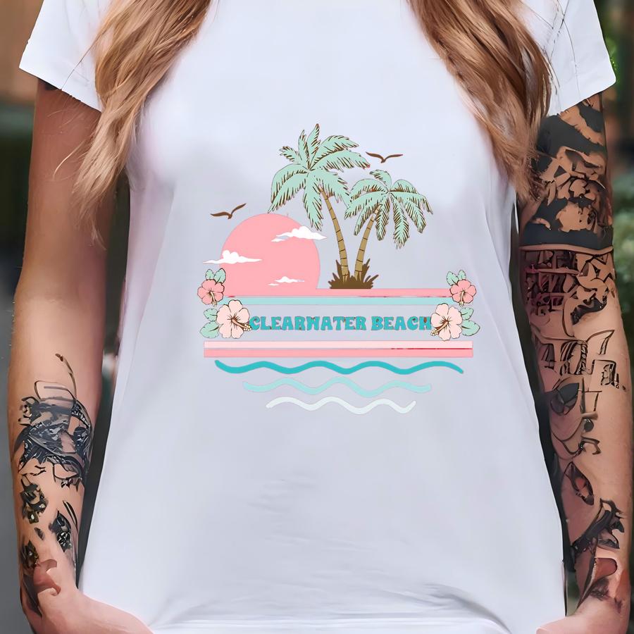 Clearwater Beach Florida Retro Vibes Floral Casual Unisex Hoodie T-shirt