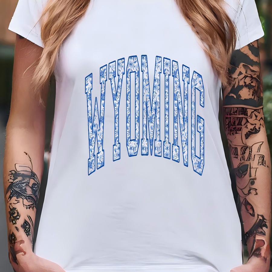 Blue Floral Wyoming Sweatshirt: Boho State Varsity Sweater T-shirt