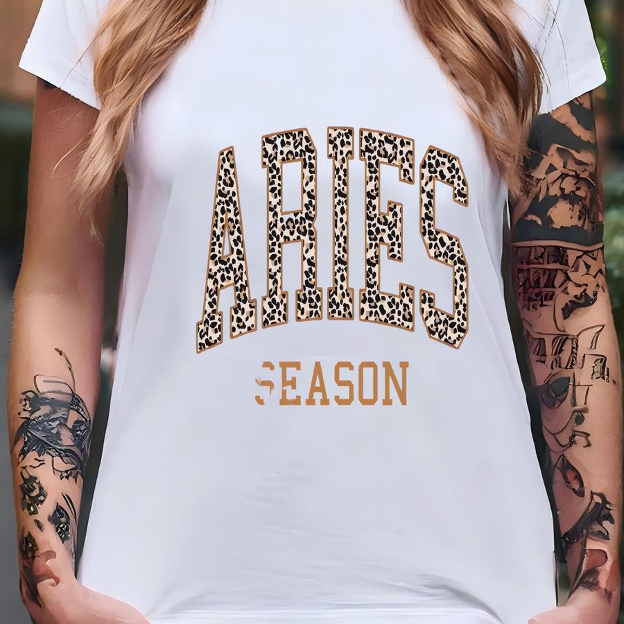 Aries Season Sweatshirt: Leopard Print Zodiac Crewneck T-shirt