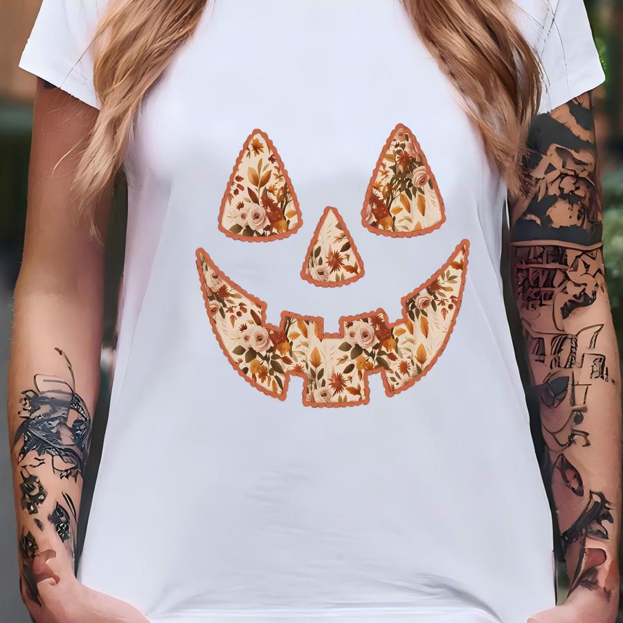 Floral Pumpkin Face Shirt Spooky Pumpkin Hoodie Floral Halloween Pumpkin Hoodie T-shirt