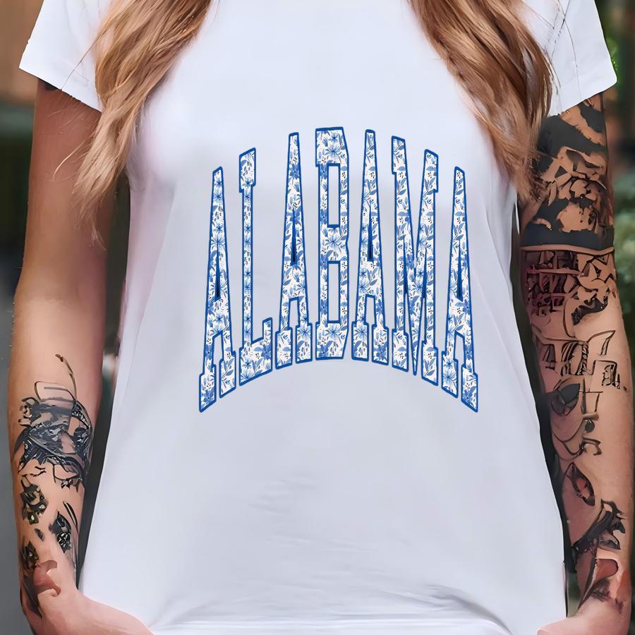 Blue Floral State Sweater: Boho Varsity Sweatshirt T-shirt