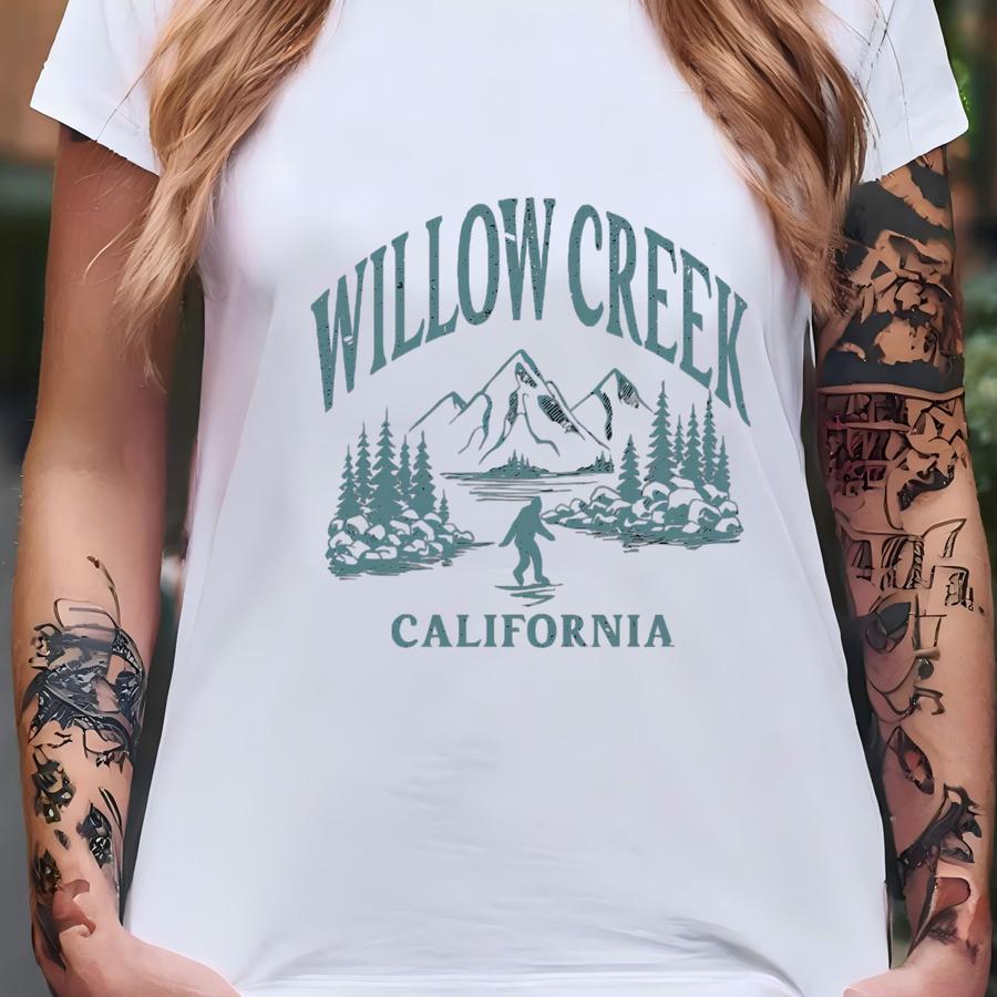 Willow Creek California Hoodie: Vintage Bigfoot Mountains Graphic Tee T-shirt