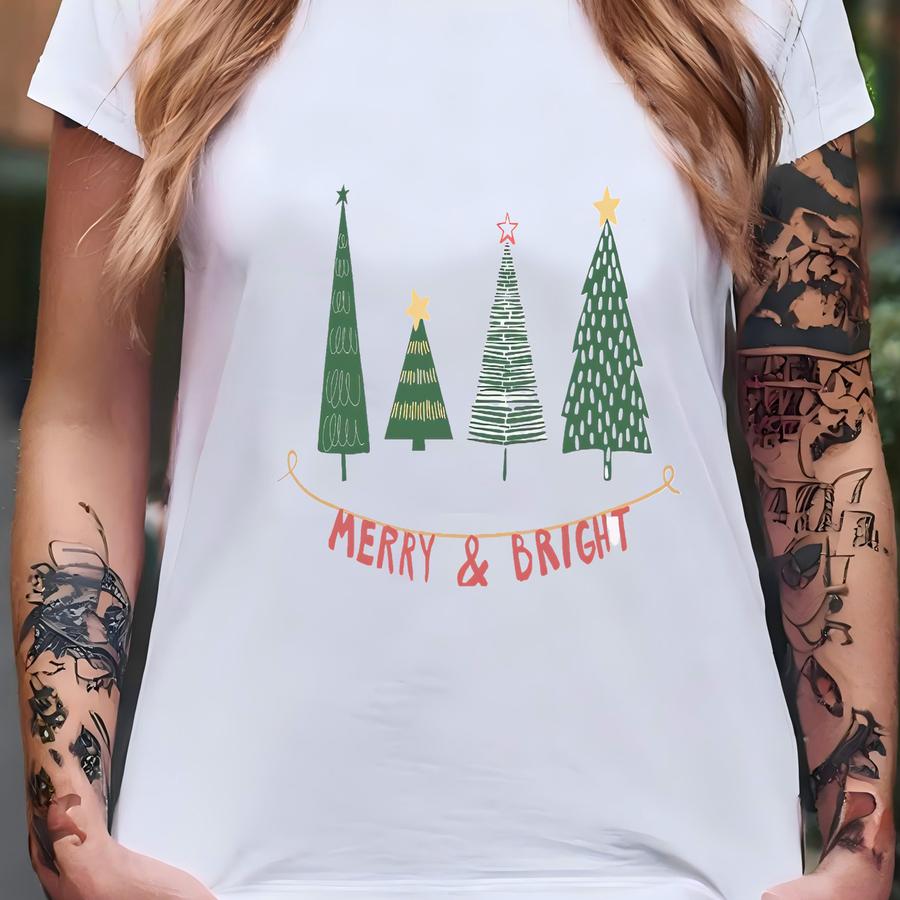 Christmas Sweatshirt, Womens Christmas Sweatshirt,merry Christmas Shirt,merry Bright Shirt T-shirt