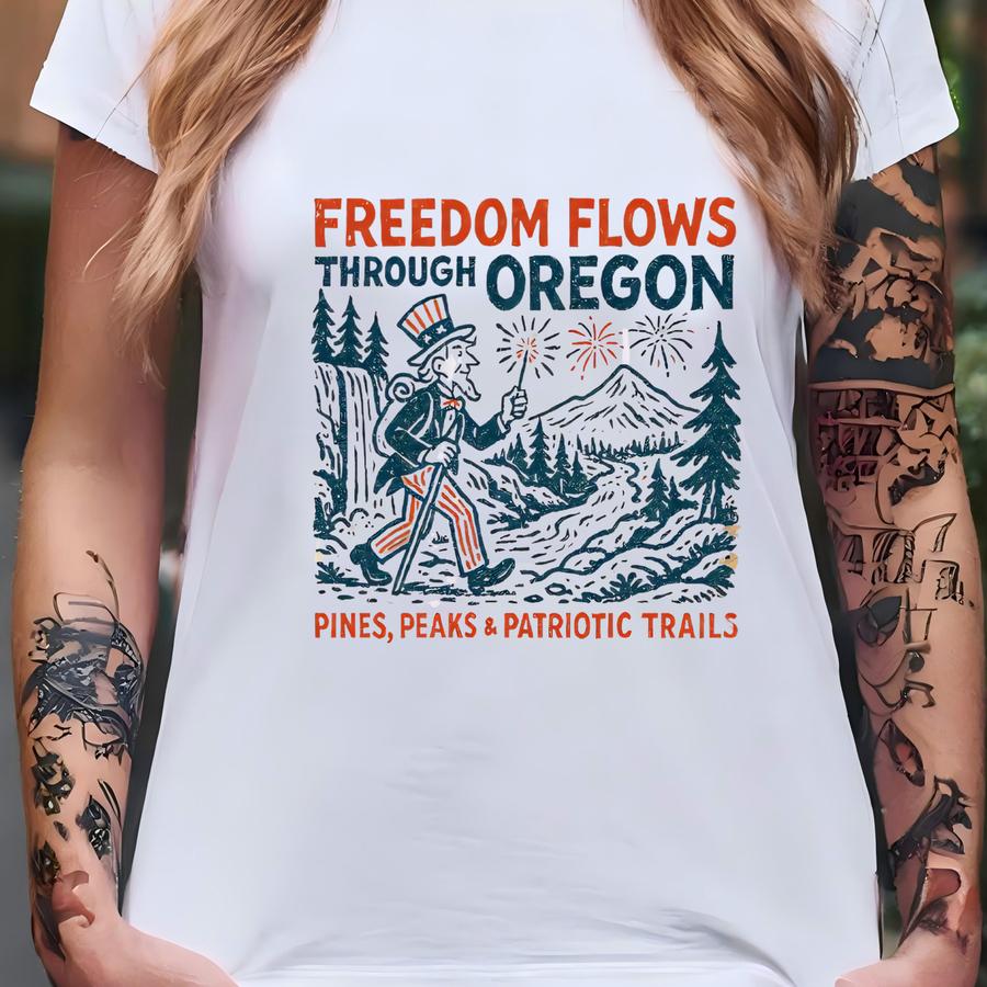 Freedom Flows Tee: Vintage Hiking Shirt, Pacific Northwest Pride T-shirt