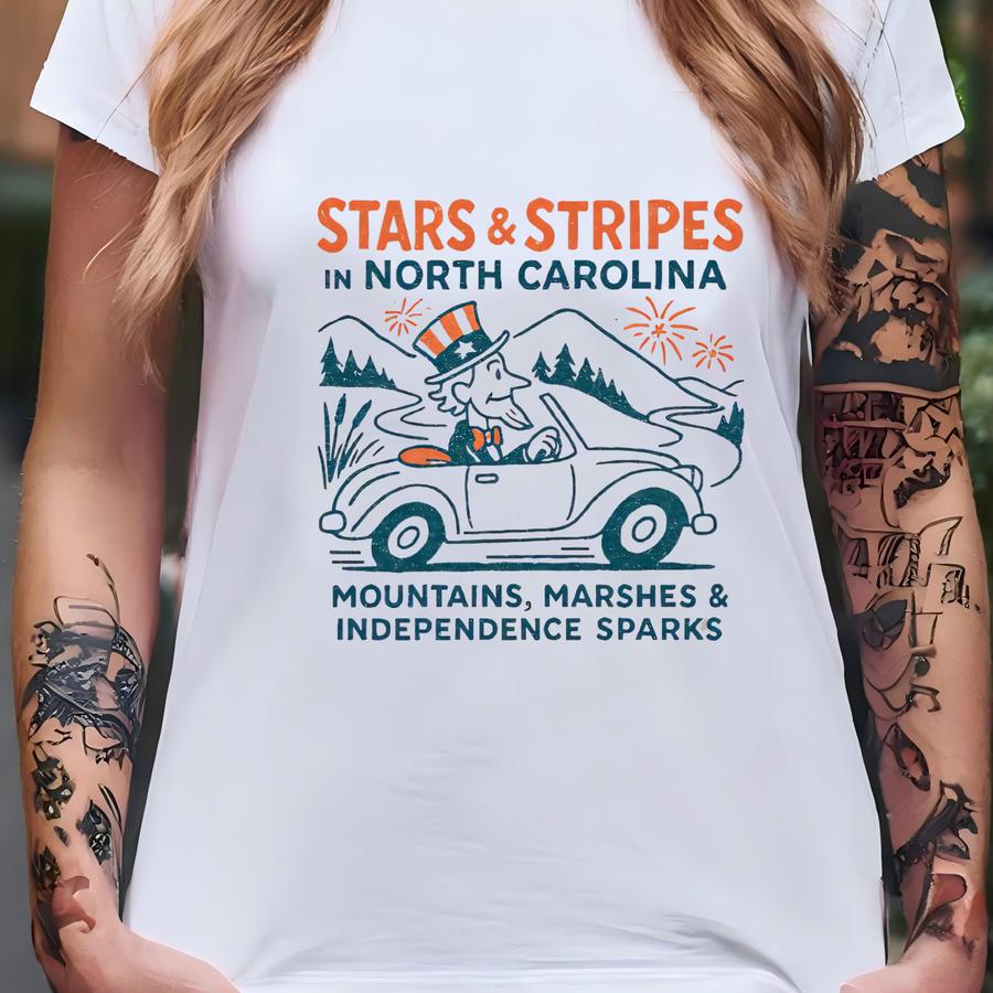 Stars Stripes North Carolina Tee: Retro 4th Of July Patriotic Shirt T-shirt