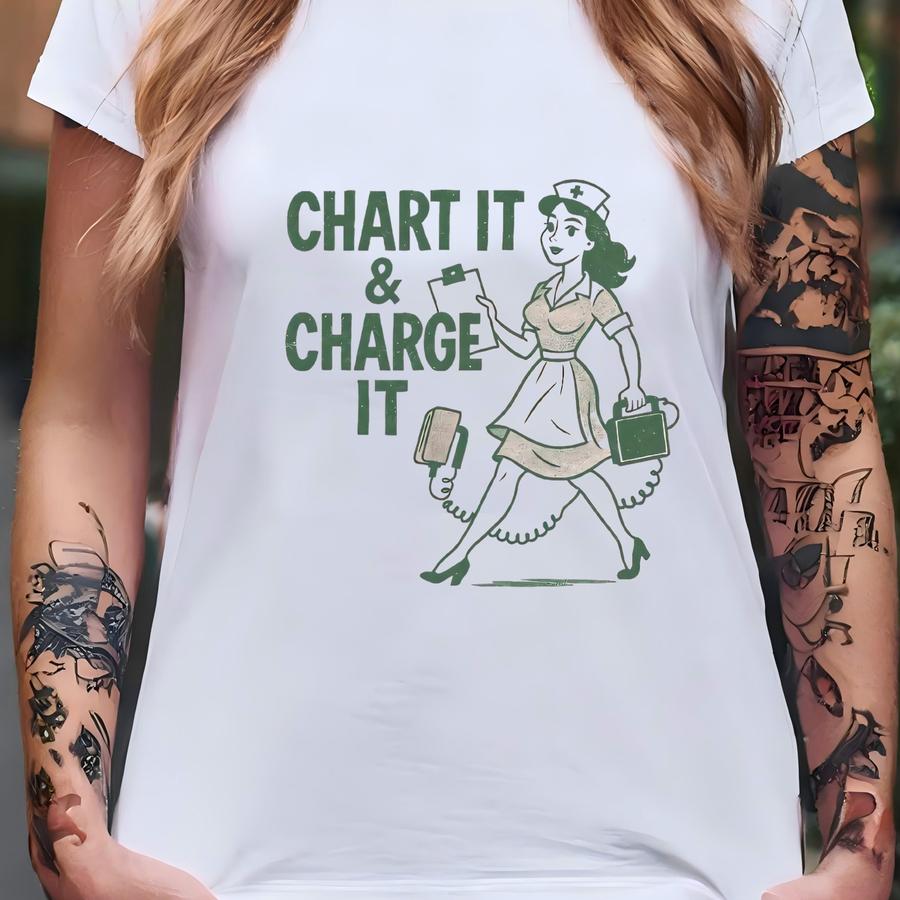 Chart It Charge It Sweatshirt - Funny Nurse Crewneck T-shirt