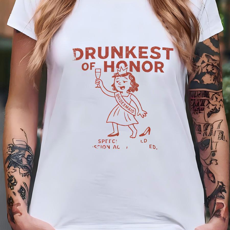 Funny 'drunkest Of Honor' Bridesmaid Tee - Bachelorette Party Gift T-shirt