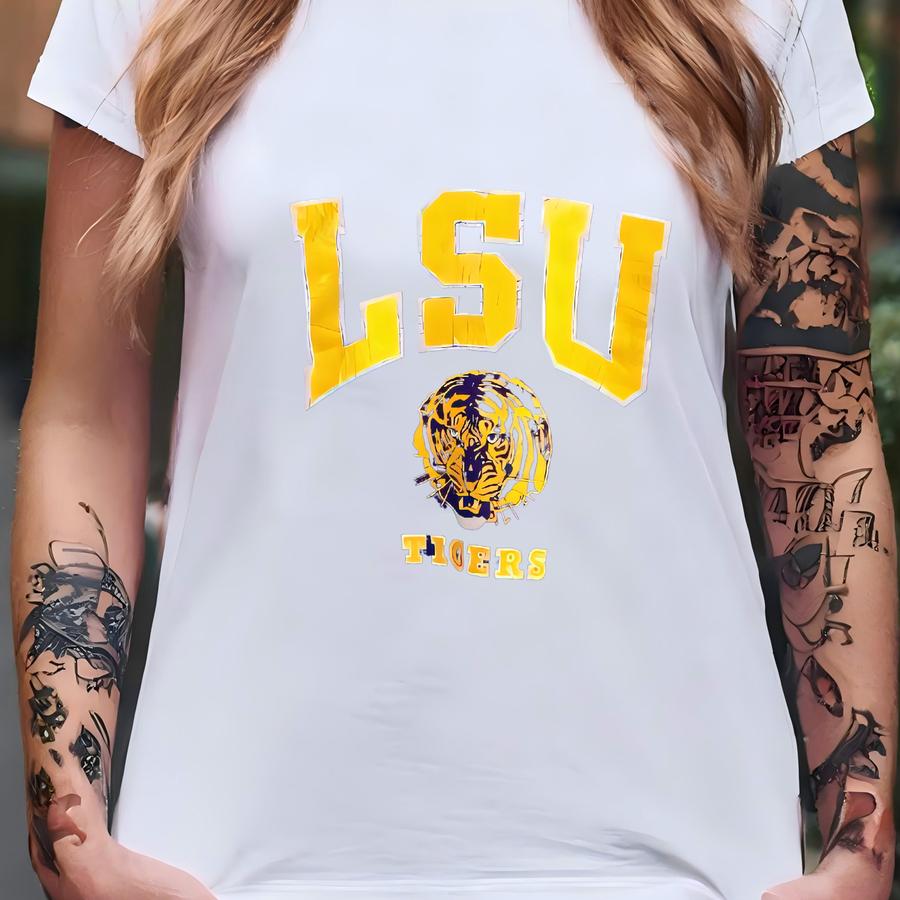 90s Ncaa Louisiana State University ‘tigers’ Crewneck Sweatshirt Print Logo Purple Color Men’s Fit To L T-shirt