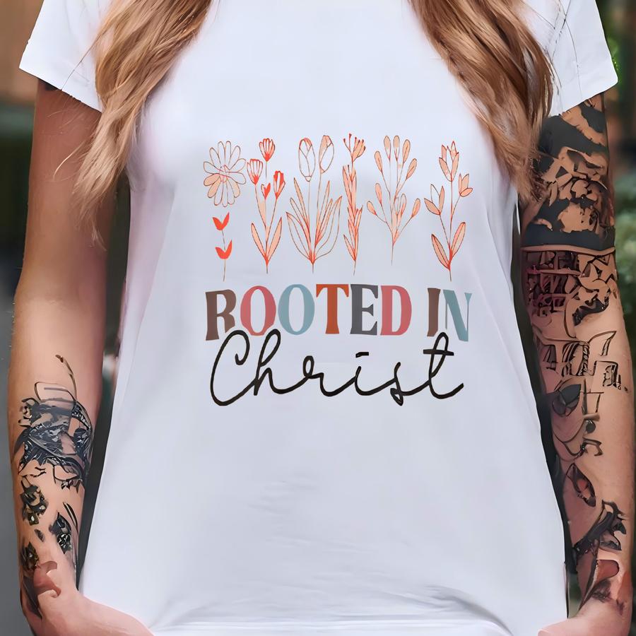 Rooted In Christ Crewneck Sweatshirt, Spiritual Sweatshirt, Christian Apparel, Faith-based Clothing, Inspirational Gift T-shirt