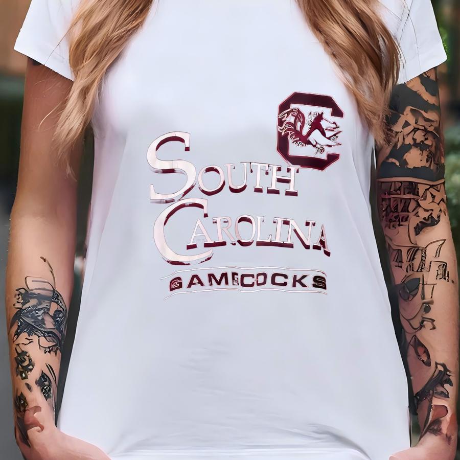 90s Ncaa University Of South Carolina ‘gamecocks’ Hoodie Print Logo Red Color Men’s L T-shirt