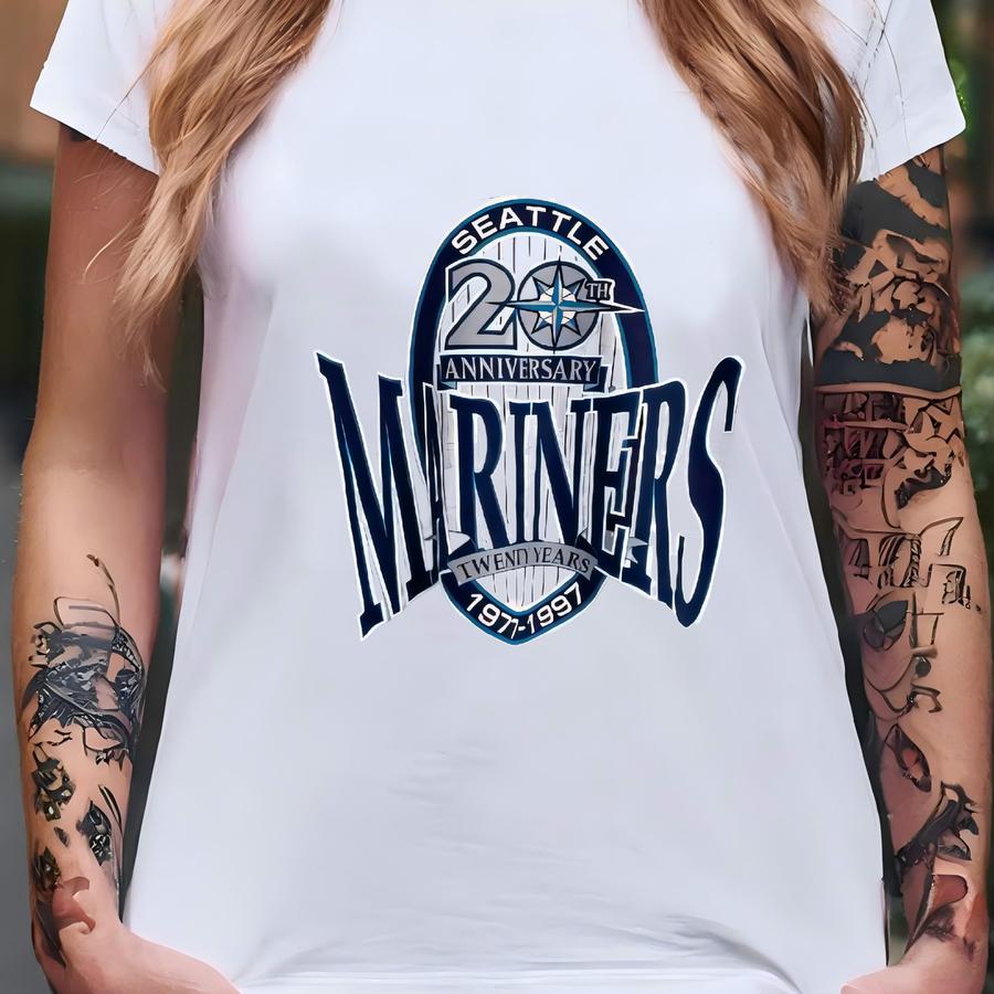 90s Mlb Seattle ‘mariners’ Hoodie Print Logo Grey Color Men’s Xl T-shirt