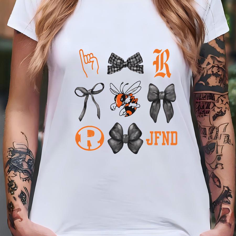 Rockwall Yellowjacket Faves And Bow Short Sve V-neck Tee T-shirt