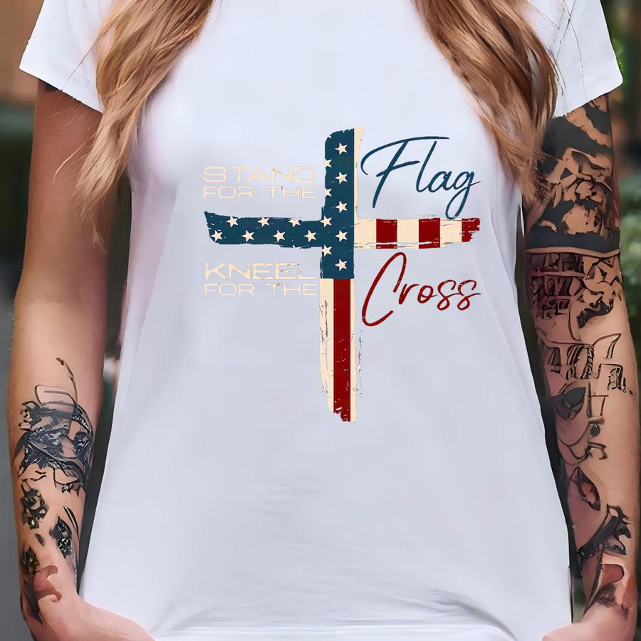 Stand For The Cross Kneel For The Flag Dtf Transfers | Ready To Press Stand For The Cross Kneel For The Flag Direct To Film Transfers T-shirt