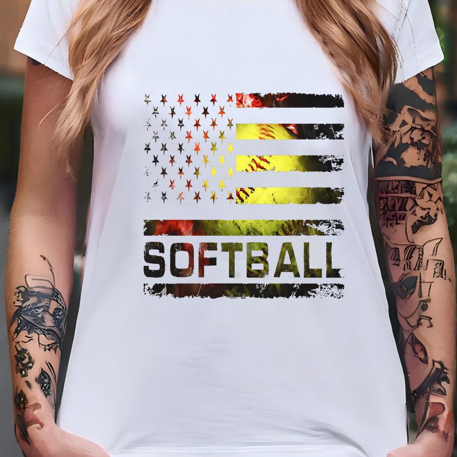 Softball Flag Dtf Transfers | Ready To Press Softball Direct To Film Transfers T-shirt