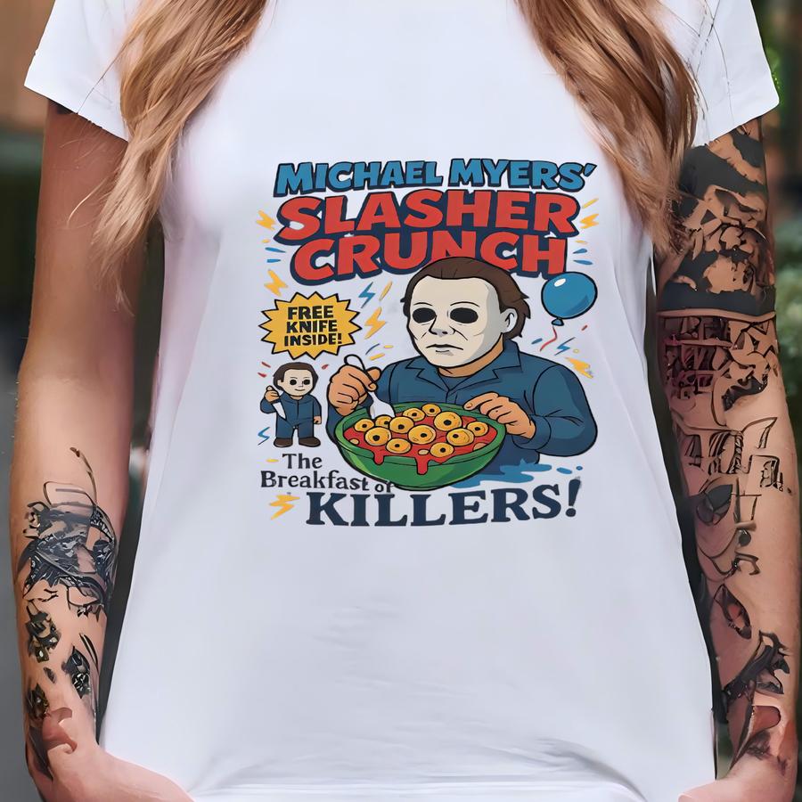 Slasher Crunch Dtf Transfer, Horror Halloween Cereal Breakfast Of Killers Design, Spooky Movie Fan Iron On T-shirt