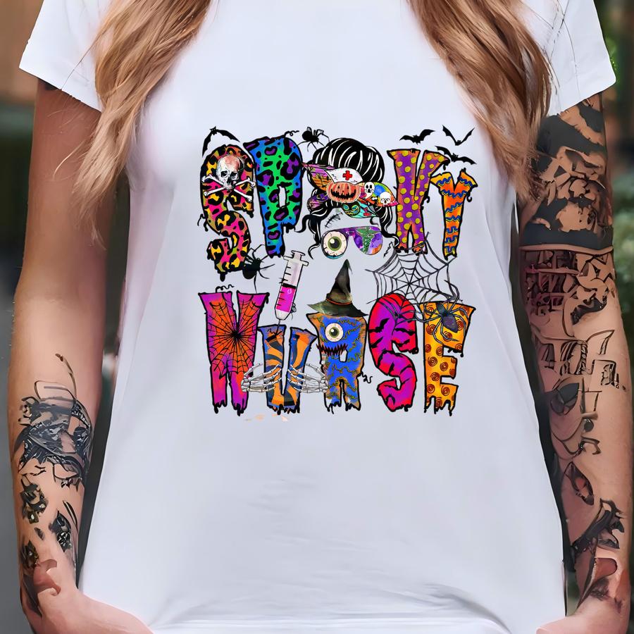Spooky Nurse Halloween Dtf Transfers | Ready To Press Nurse Text Halloween Direct To Film Transfers T-shirt