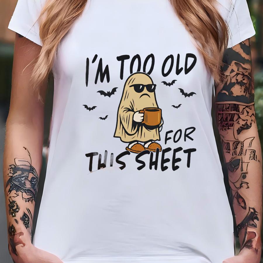 Funny Ghost Dtf Transfers, Too Old For This Sheet Direct To Film Transfer, Spooky Season, Halloween Ready To Press, Dtf Transfer T-shirt