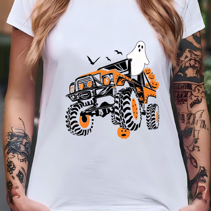 Ghost Monster Truck Halloween Dtf Transfers | Ready To Press Monster Truck Halloween Direct To Film Transfers T-shirt