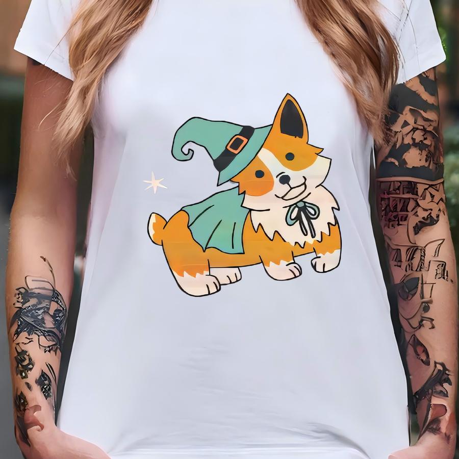 Corgi Halloween Dtf Transfers | Ready To Press Halloween Direct To Film Transfers T-shirt