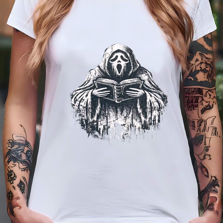 Shirt, Ghost Reading A Book Rough Texture Look Shirt, Spooky Reader Shirt, Teacher Ghost, Librarian Halloween, Spooky Season T-shirt