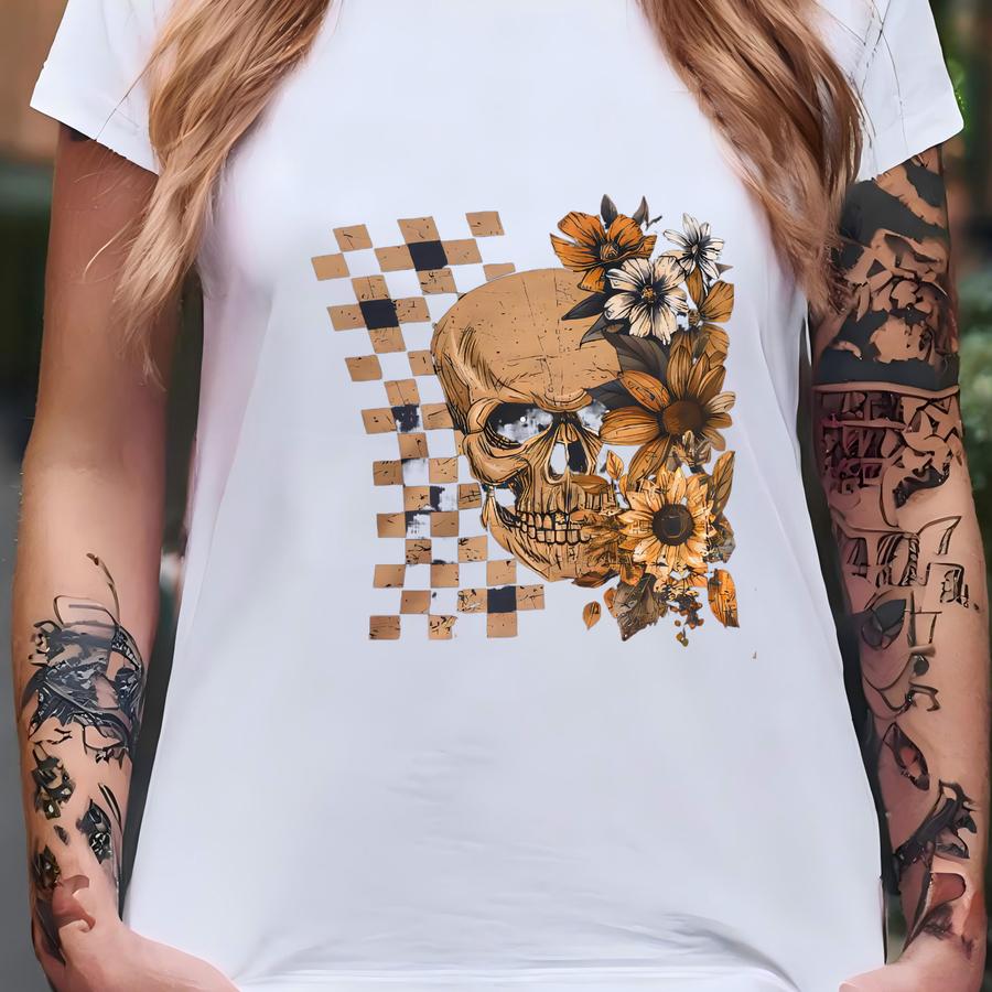 Floral Skull Unisex Tee: Boho Fall Fashion, Halloween Outfit T-shirt