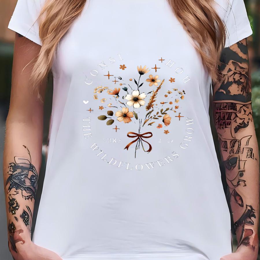Shirt, Consider How The Wildflowers Grow Shirt, Wildflower Christian, Bible Verse Shirt, Religious Gift, Flowers Shirt, Jesus T-shirt