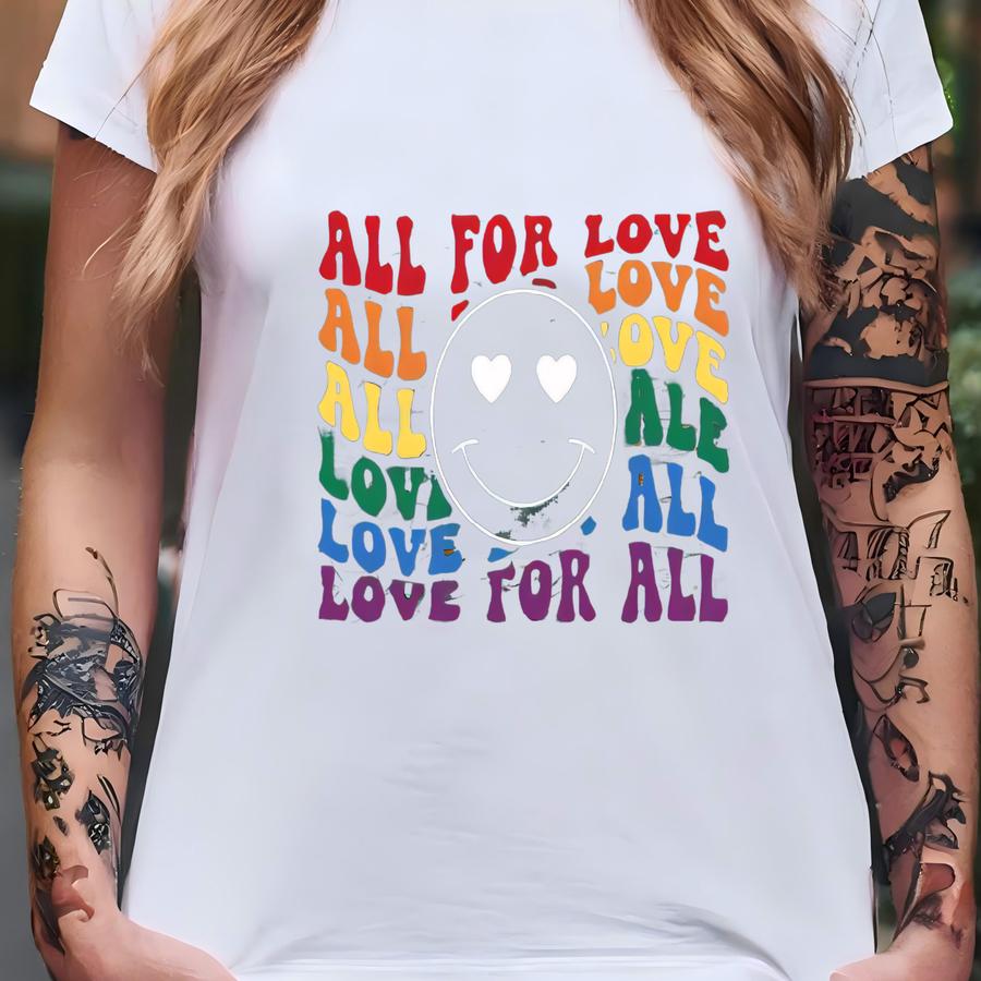 All For Love For All Shirt, Gay Pride Shirt, Lgbtq Shirt, Lgbt Tee, Lesbian Gift, Gay Love Hoodie, Pride Month Shirt, Rainbow Pride Crewneck T-shirt