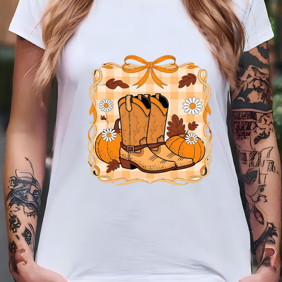 Shirt, Western Cowgirl Boots Tee, Fall Autumn Shirt, Pumpkin Season, Thanksgiving Shirt, Western Fall Shirt, Country Spooky T-shirt